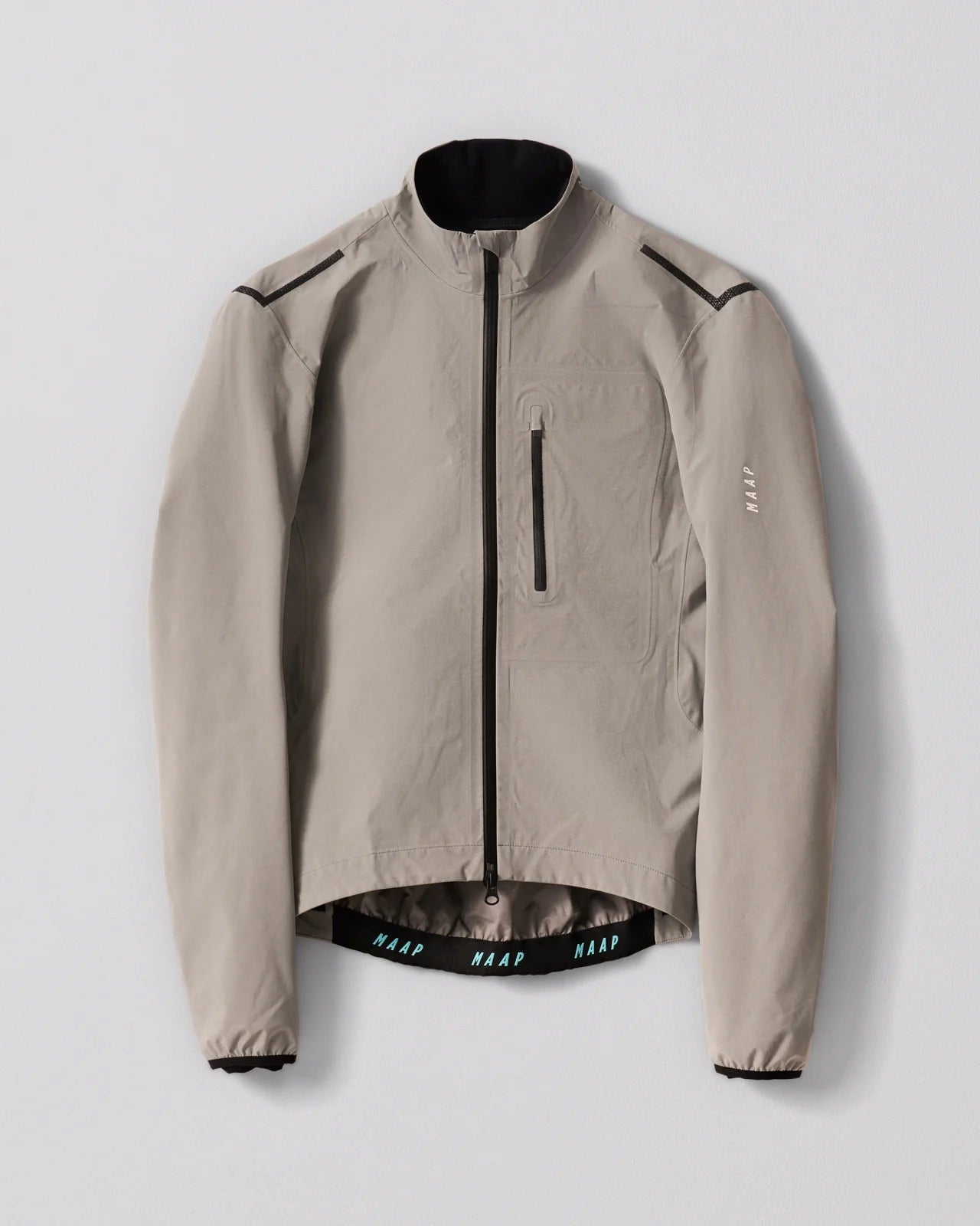 Take on the elements in the Ascend Pro Rain Jacket. the most waterproof and windproof jacket in the collection. Constructed from Sympatex® fabric which features a breathable 3-layer membrane. thermo-taped seams and a YKK Aquaguard® zipper alongside an additional DWR durable water-resistant coating to ensure you stay dry even in severe weather conditions. To eliminate water penetration. the Ascend Pro Rain Jacket is designed with a drop-back elastic hem. elastic cuffs and a high collar. The contoured fit and articulated sleeve design offer all-day comfort and allow for unrestricted movement on the bike. Reflective logo transfers on the back and sleeve provide enhanced visibility. while the waterproof chest pocket adds easy-to-access storage.